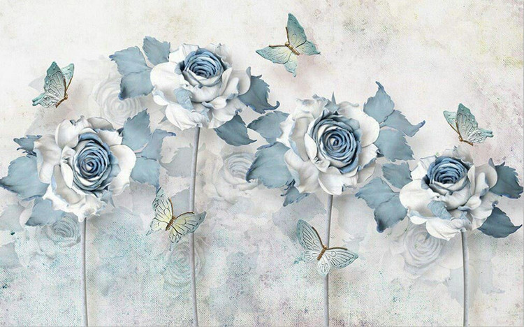 پوستر دیواری طرح گلهای آبی و سفید رنگ