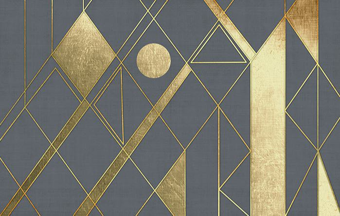 پوستر دیواری سه بعدی ترکیب رنگ طوسی و طلایی